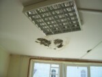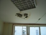 Pa već dvije godine upozoravamo na prokišnjavanje krova ali nikako da se pokrene pitanje sanacije krova. Prošli tjedan zatekli smo učionicu punu vodom. Sada su rigips ploče pune vode i spremne su pasti sa plafona na nečiju glavu. Stolovi i drveni pod su se napili vode pa možemo očekivati da će to sve nabubriti. Ako se uskuro odgovorni ne odluče riješiti problem info klub VIrus će krenuti sam u akciju saniranja krova jer učionica je daleko od uvijeta za korištenje.